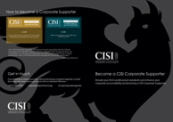 Organisations across the financial services professional sector have the opportunity to become corporate supporters. On one level, this is a public endorsement by the corporate supporter of the aims and objectives of the CISI including support of the Institute’s Code of Conduct. Supporters are entitled to use the CISI logo and demonstrate a shared commitment to high standards of excellence and professionalism.
