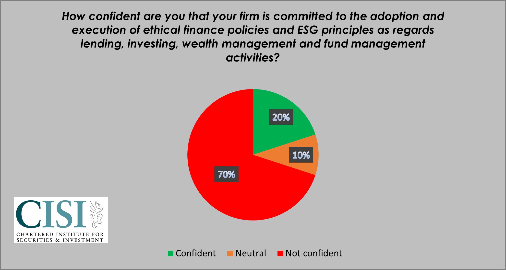 Only 20% of those working in the UK financial services profession are confident that their firms are committed to ethical finance policies and ESG principles when it comes to their lending, investing, wealth management and fund management activities, according to a new survey by the Chartered Institute for Securities & Investment (CISI).
